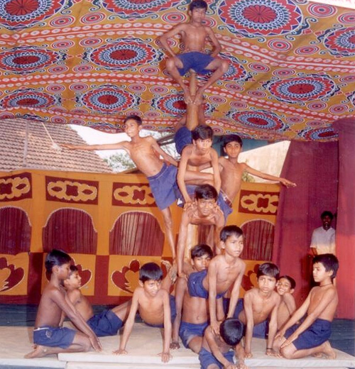 A martial art activity - Climbing the Rope hung from a height of 20’ to 25’ and performing various feats on the rope. Over 500 children are trained.